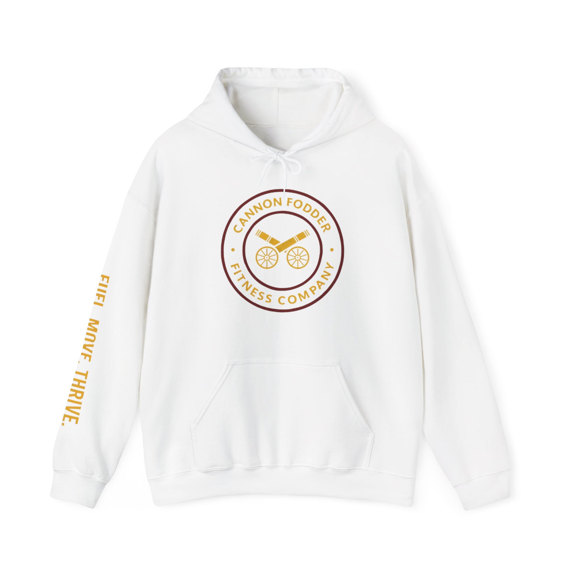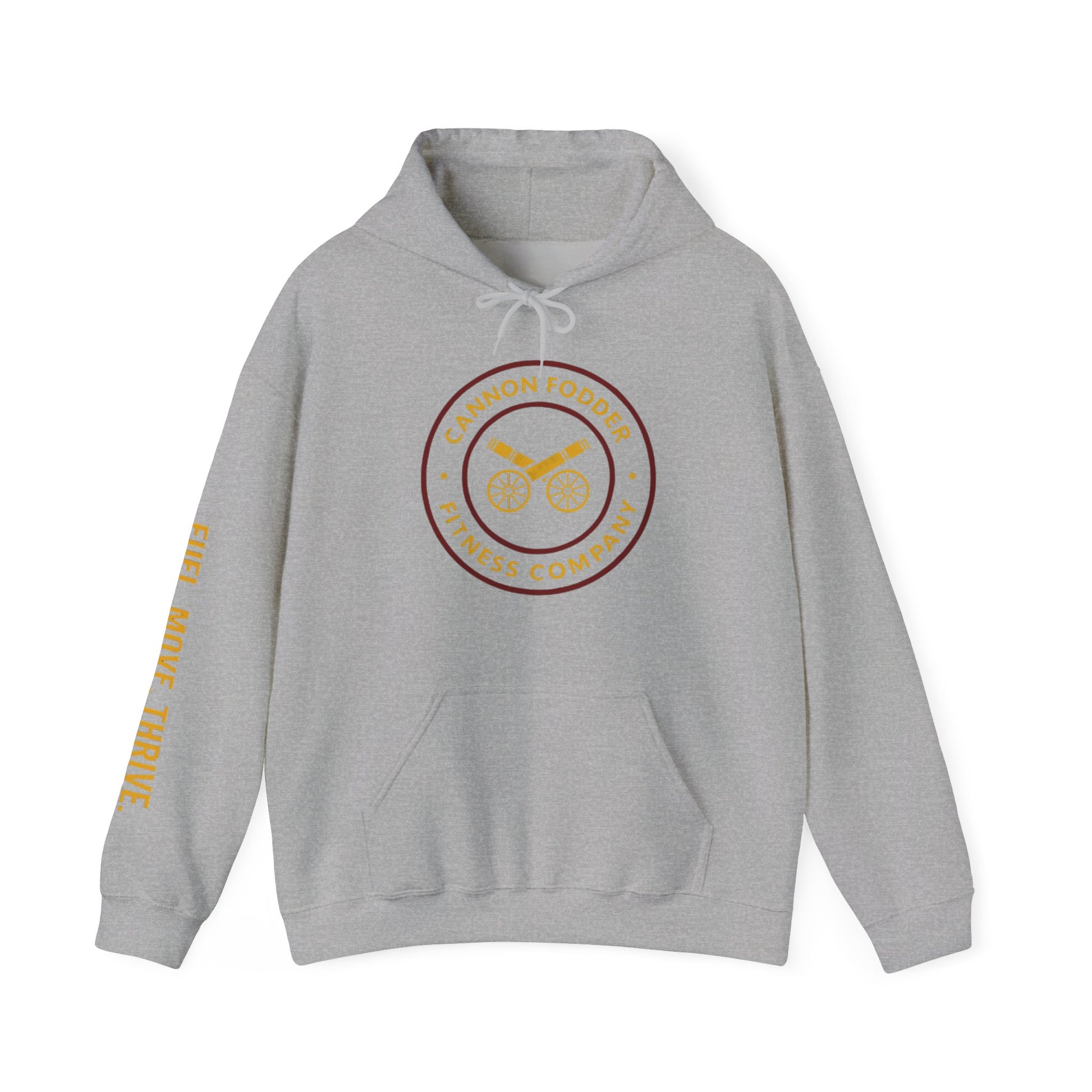 Rep the lifestyle in comfort and style with the Cannon Fodder Fitness Emblem Hoodie. Built for the gym, the street, or recovery days, this hoodie delivers a perfect balance of durability and softness while showcasing your strength with the Cannon Fodder Fitness emblem front and center.